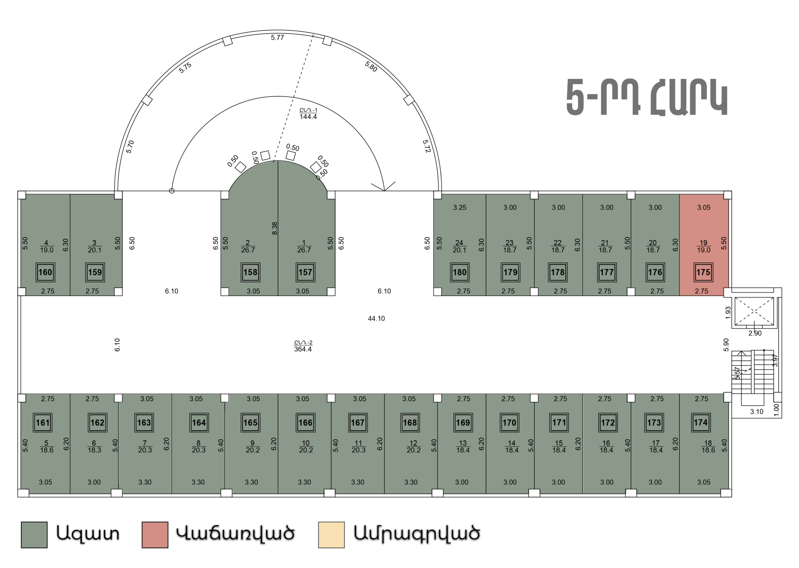 5. Միավորած և անտրեսոլային հարկ ավելացրած (454.4 ք/մ)