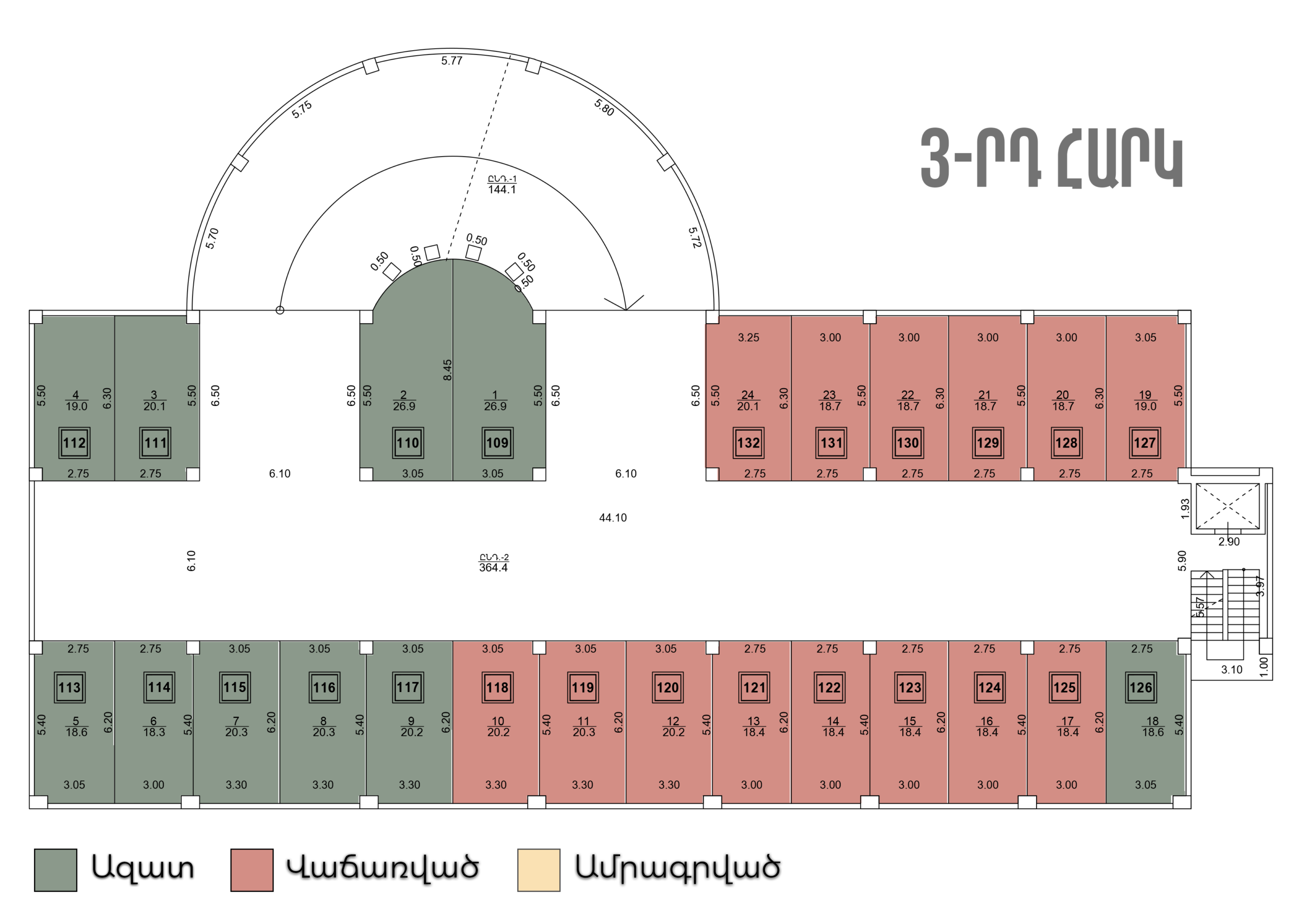 3. Միավորած և անտրեսոլային հարկ ավելացրած (455.7 ք/մ)