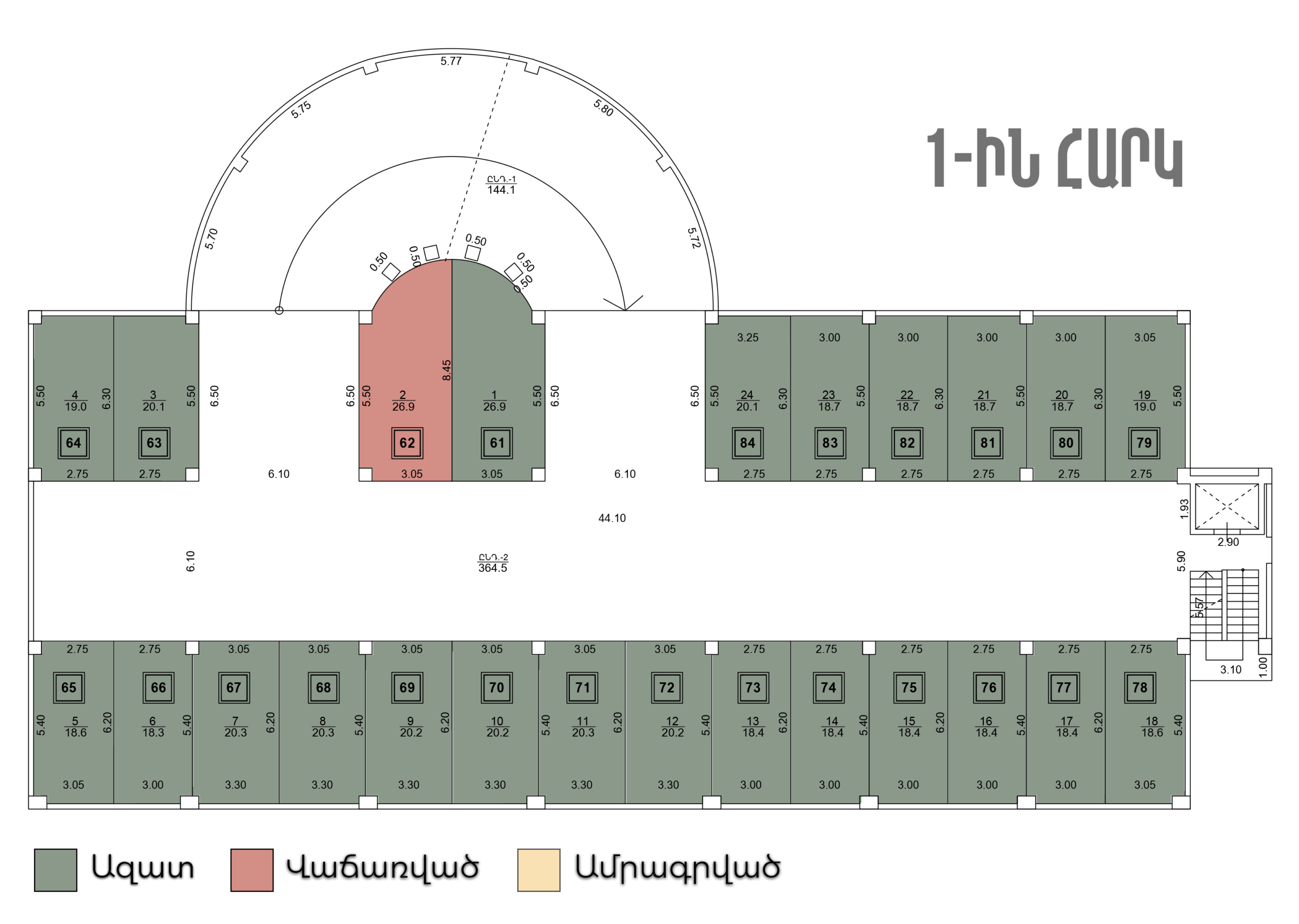 1. Միավորելու (306,7 ք/մ) և անտրեսոլային հարկ ավելացնելու հնարավորություն (549.36 ք/մ)