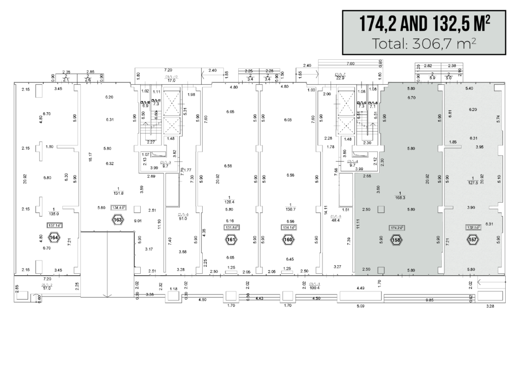 Possibility to combine (306.7 sq.m) and add a mezzanine floor